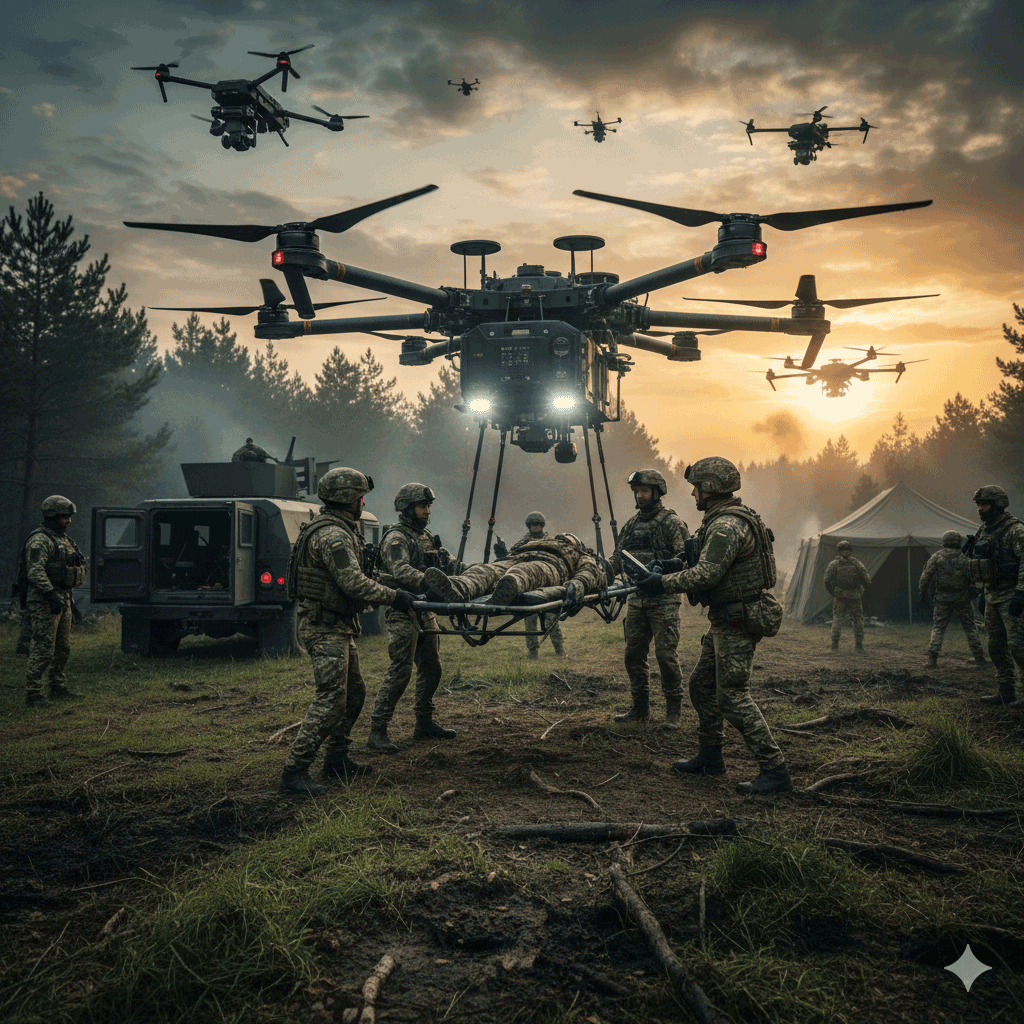 - Евакуація поранених за допомогою спеціалізованих безпілотних платформ.