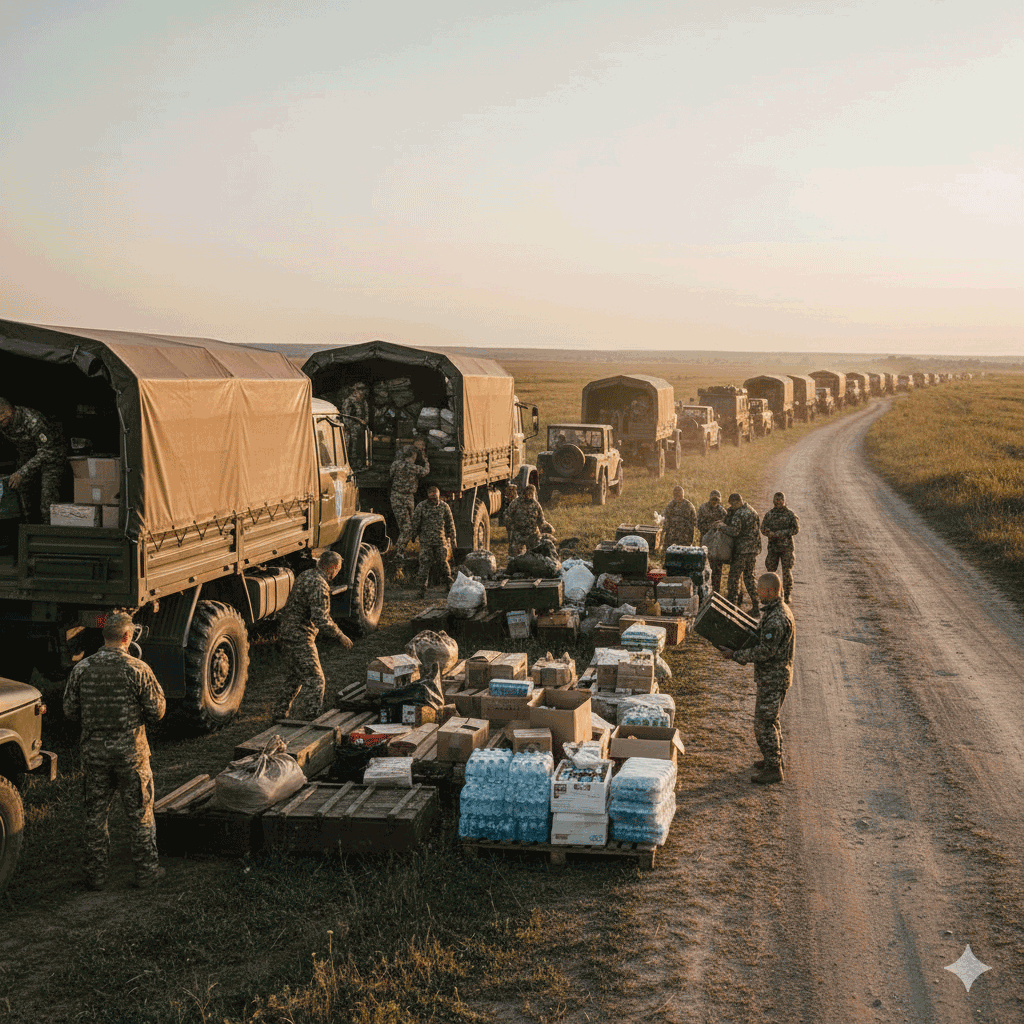 Регулярне підвезення їжі, води, засобів гігієни у польові умови.