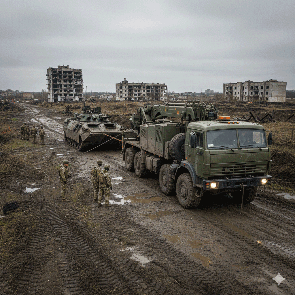 Вивезення підбитої або зламаної техніки з поля бою на ремонт або списання.